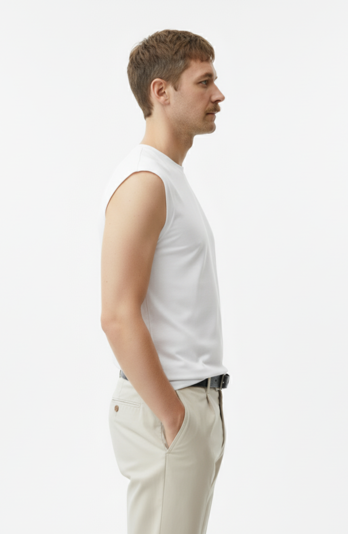 A Regata Alma Rib foi feita para quem prefere a pureza da forma: corte limpo, ombros marcados e tecido que acompanha o corpo sem apertar.