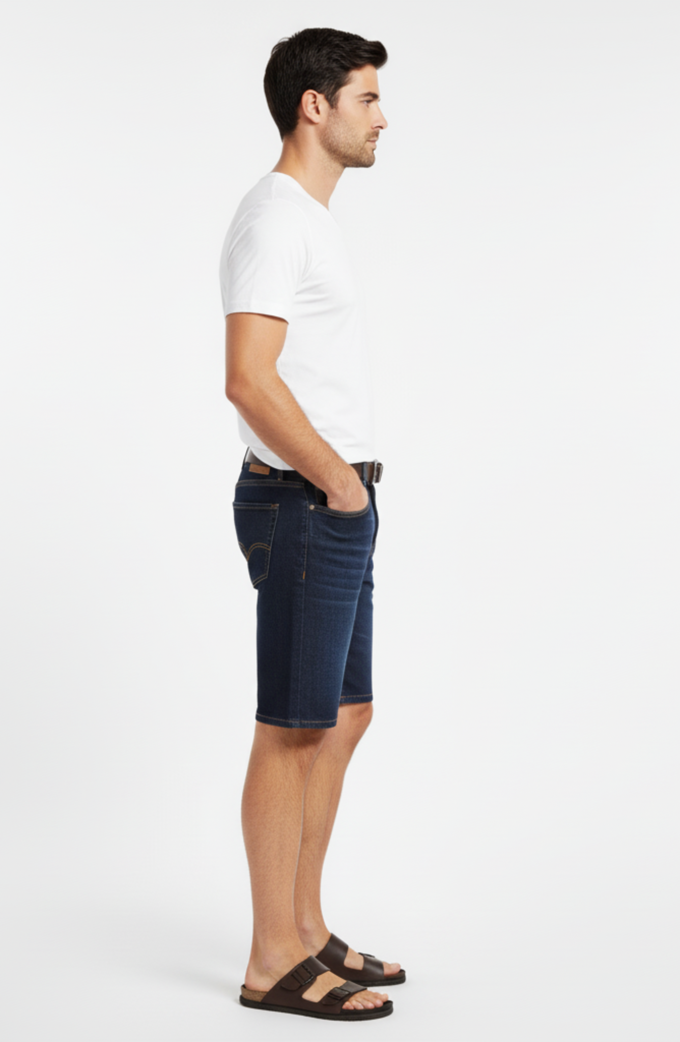 Modelagem limpa, corte preciso e denim premium com elasticidade inteligente — confortável sem perder estrutura.